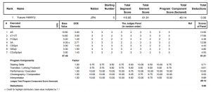 Premesso che, complici una pista piuttosto piccola e le luci basse, Yuzu non è quasi mai riuscito a presentarlo senza alcun errore, bisogna però dire che l’impressione è stata davvero ottima. Un programma ancora più intenso e sentito, nel quale Yuzu riesce a “vivere” la musica dalla prima all’ultima nota. Anche gli eventuali errori passano quasi inosservati tanto è scorrevole, una sublime unione di intensità, delicatezza, arte, tecnica e musica, inscindibili tra loro, nella quale il gesto tecnico non è più unico protagonista, ma fa parte di un insieme perfetto.