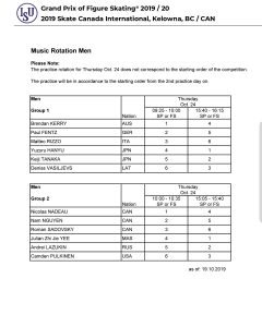 Nelle due sessioni di practice di domani (sempre che lui partecipi anche a quella del mattino) Yuzuru sarà nel primo gruppo e l’ordine di discesa in pista sarà il seguente.
